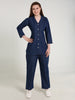 Denim Solid Coat Collar Cord-Set